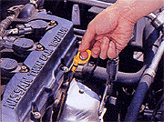 5.オイル・レベル・ゲージを元の位置に差し込みます。