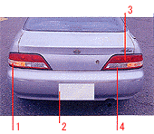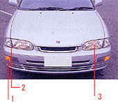 1.エンジン・スイッチを入れ、ヘッド・ランプ、テール・ランプ、ライセンス・ランプ、ブレーキ・ランプ、クリアランス・ランプ、バックアップ・ランプなどの点灯具合やウインカ・ランプの点滅具合が不良でないかを点検します。